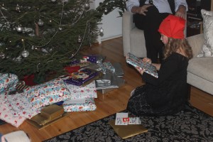 Evie wearing her ‘tonttu’ hat