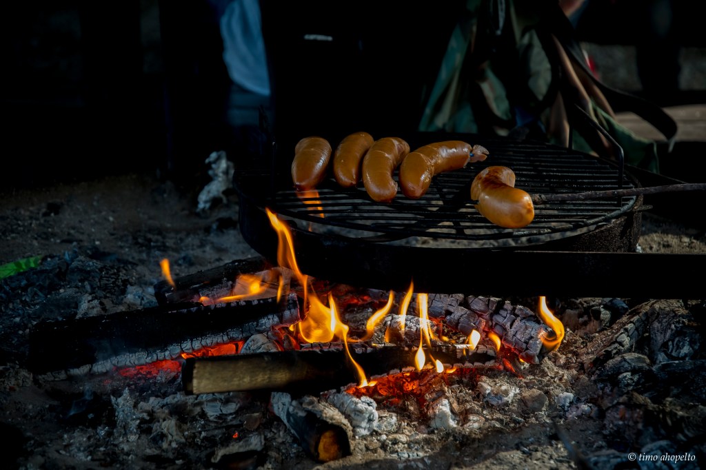 For many people reading this, it will seem an incredible concept; lighting a fire within a zoo. But this is Finland and starting a fire to cook sausages and toast marshmallows is a perfectly normal activity, even in the zoo. You cannot light a fire anywhere you choose, there are designated places with a shelter (laavu) and fire pit, . These spots are still close to the animal enclosures, however, and the elks are quite used to humans eating lunch nearby, so often come over to say ‘hei‘.
