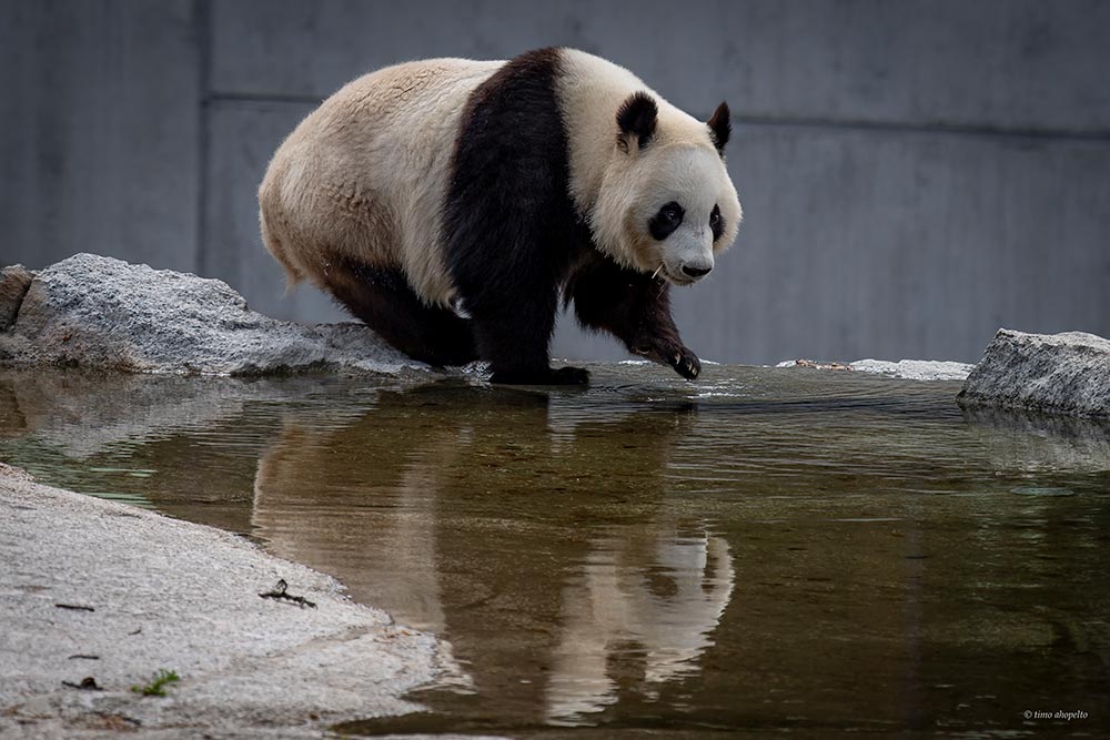 If you are lucky, you will be there at playtime, when the pandas are most active, padding around both inside and outside, playing with their toys or climbing frames. Or you will be there at feeding time, and see them expertly stripping their bamboo canes and devouring the inside. Making a lot of noise in the process.