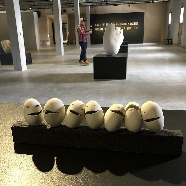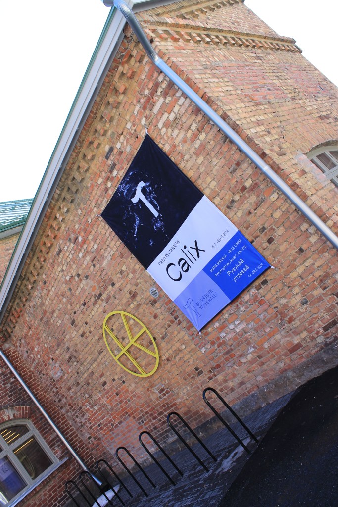 When we visited, we saw an exhibition named “Calix” by local artist and sculptor Päivi Rintaniemi. As you can see from the photos, her delicate looking ceramic bowls, vases and EGGS, in white clay from the earth of Etelä-Pohjanmaa, stand out in stark contrast to their surroundings.